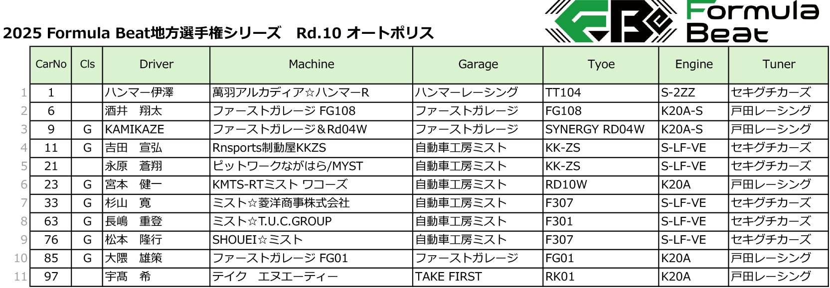 2025年 F-Be選手権 第10戦のエントリーについて