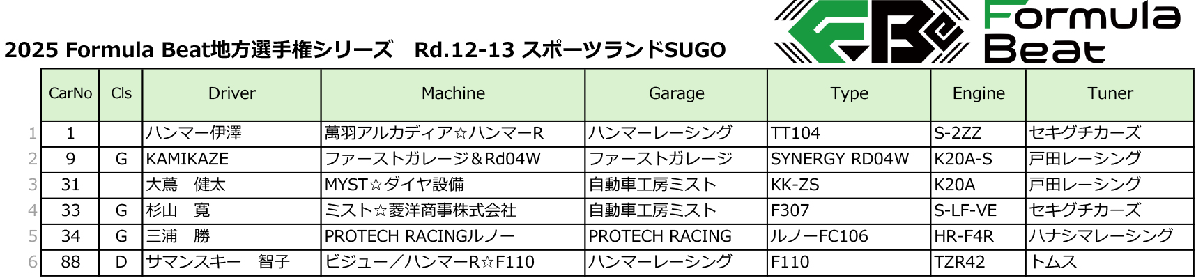 2025年 F-Be選手権 第12戦・第13戦のエントリーについて
